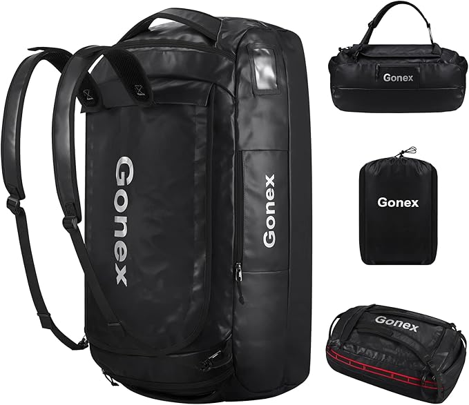 Gonex 80L Duffel Bag Backpack, Convertible to Gym Backpack and Handbag for Men Women, Water-Repellent for Hiking Camping Travelling Cycling, Black