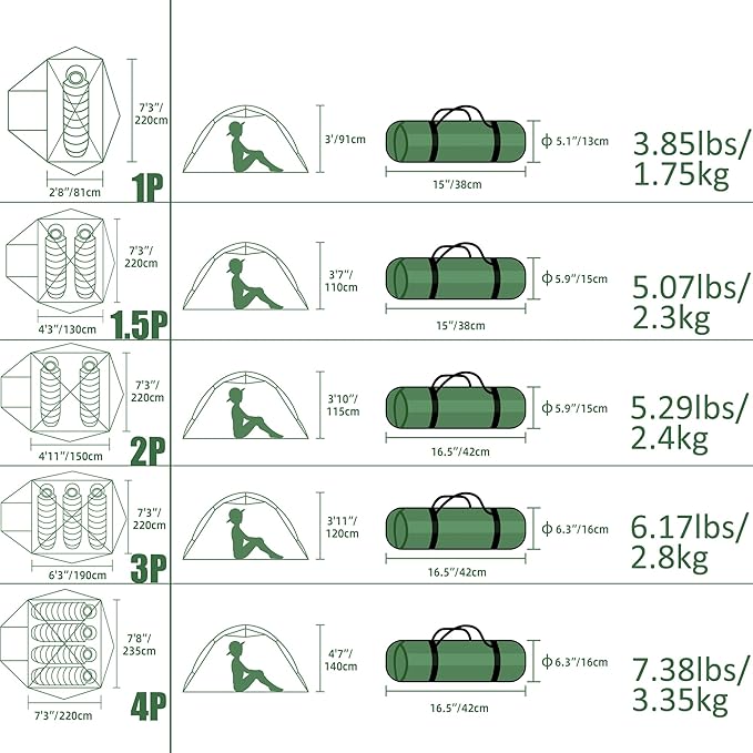 - QUICK SETUP & COMPACT: Freestanding and two lightweight Aluminum poles designed for fast pitching. Easy to set up with no experience. This backpacking tent is compact and portable, also great for Hiking, Bikepacking, Kayaking, Mountaineering, Fishing or Car Camping