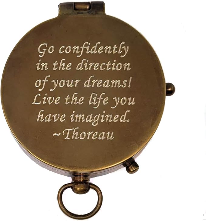 - CUSTOM ENGRAVABLE COMPASS - The compass lid reads: Go confidently in the direction of your dreams. Live the life you have imagined! ~Thoreau Personalize the inside lid with the recipient's name, a date, the achievement, and/or your own message