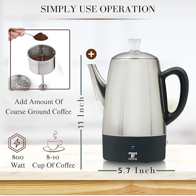 - Customer Support: Moss & Stone electric coffee percolators are covered under our 1-year warranty! Ideal gift for Christmas, birthdays, anniversaries, Mother's Day, New Year, housewarming, etc.