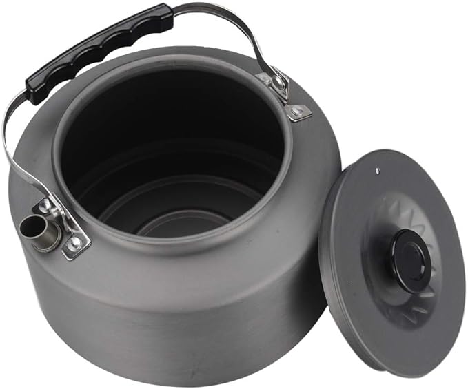 - 【Food-grade Kettle】This camping kettle is made of hard anodized aluminum,safe for all people to use.Hard-anodized aluminum conducts heat quickly,stand high temperature, corrosion-resistant, rust-free,built to last.