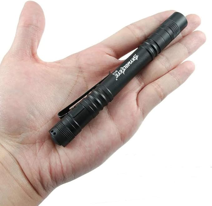 - Compact & Slim Size: The pen light slim & mini size fits into small tight spaces to light hard to see work areas. Comes with a clip, easy to carry out, it's a good choice for Inspection and repair. Note: led pen light flashlight is powered by 2 AAA batteries (Battery Not Included)