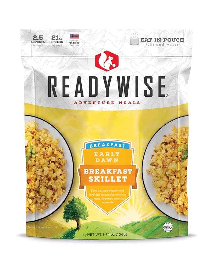 - VERSATILE USES: Beyond camping and survival, ReadyWise Breakfast Skillet is perfect for home storage, quick family breakfast, and last-minute snacks. It's a versatile addition to your pantry.