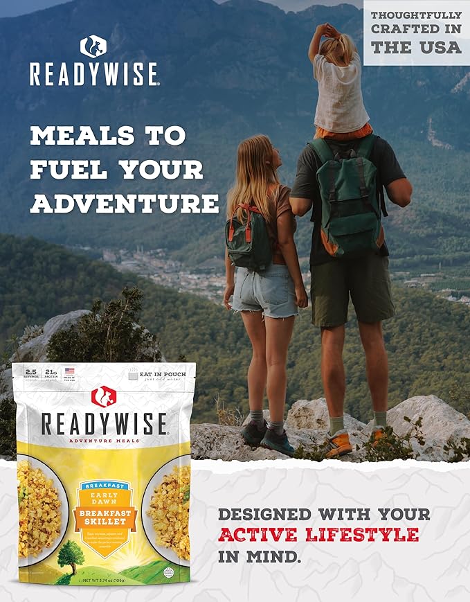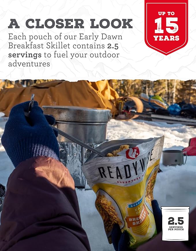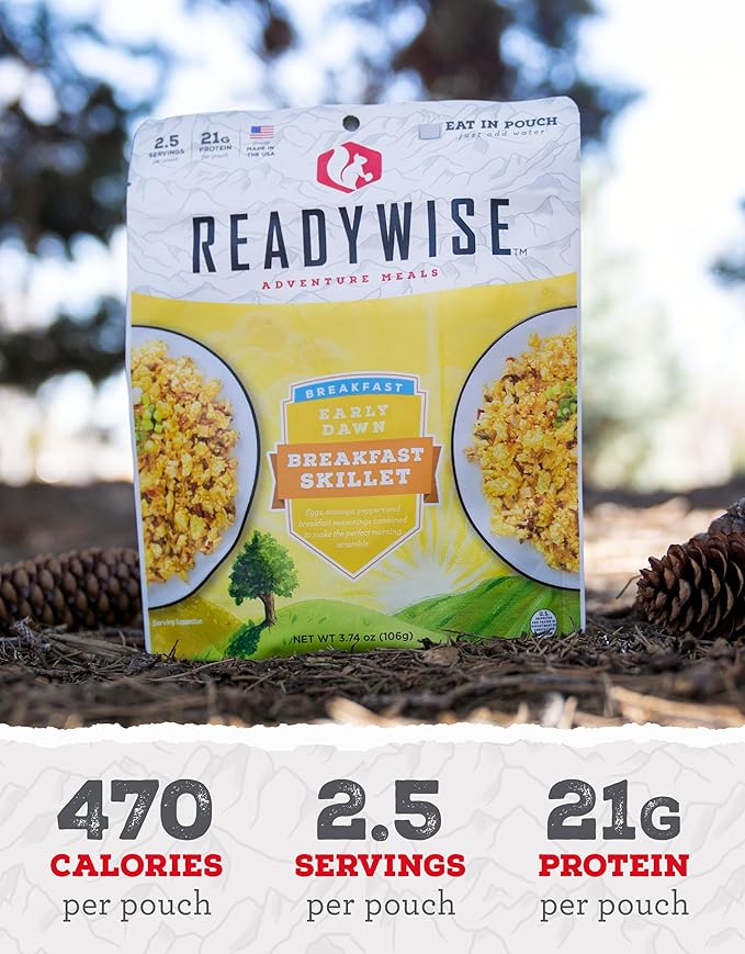 READYWISE - Outdoor Breakfast Skillet, 2.5 Servings, Pack of 1, Emergency Preparedness, Freeze Dried Food, MRE, Snack Pack, Survival Food, Emergency Food for Backpacking, Camping, and Hiking