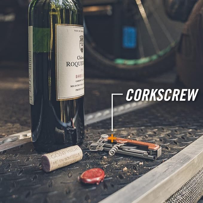 - The Armbar Multitool plus corkscrew can handle anything your pocket knife could with a one-hand opening fine edge blade, corkscrew bottle opener, and more