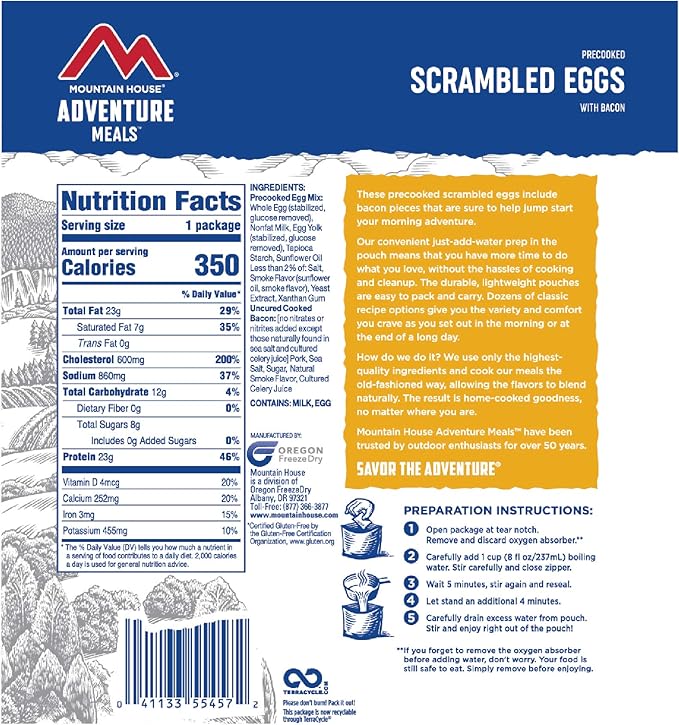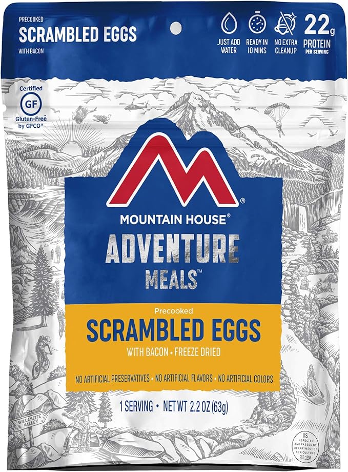 Mountain House Scrambled Eggs with Bacon | Freeze Dried Backpacking & Camping Food | Single Serving | Gluten-Free