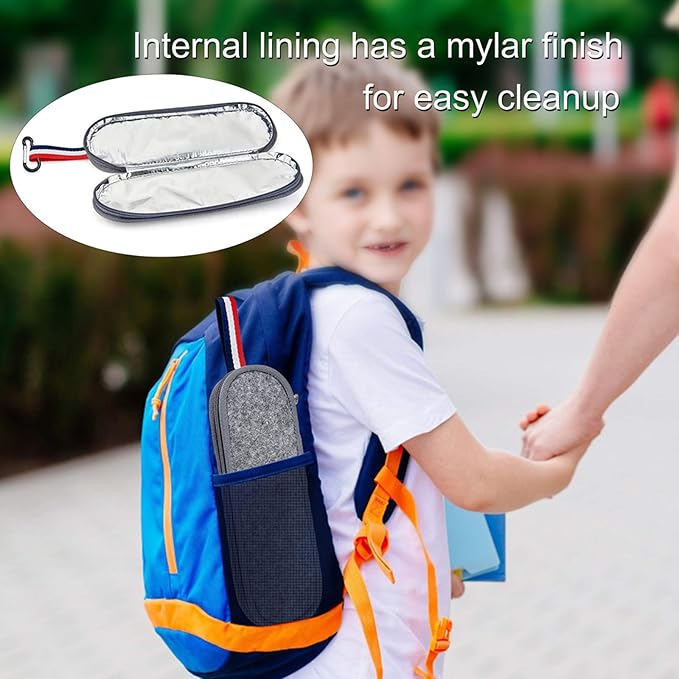 - PORTABLE & EASY TO CARRY: Comes in a fashionable zippered pouch to keep everything together and clean, Internal lining has a mylar finish for easy cleanup, Felt fabric shell make it easy to just slip into your backpack, purse, briefcase and lunch bag