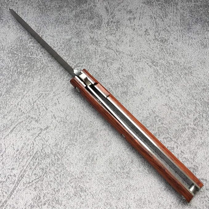 Folding Knife Small Portable Flipper, Ball Bearing, Liner Lock, Wooden Handle, Leather Sheath, for Outdoor, EDC, Collection, Gifts (Tanto Blade)