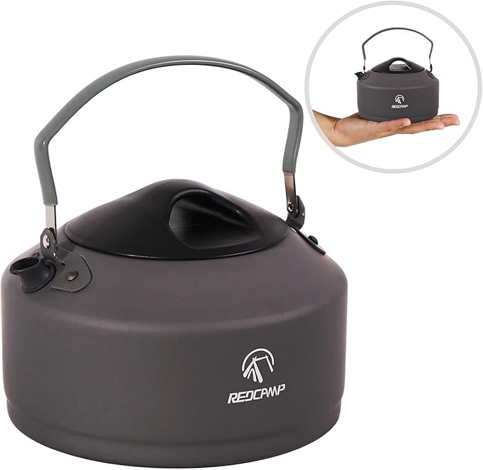 REDCAMP 0.9L Small Outdoor Camping Kettle, Aluminum Water Pot with Carrying Bag, Compact Lightweight Tea Kettle
