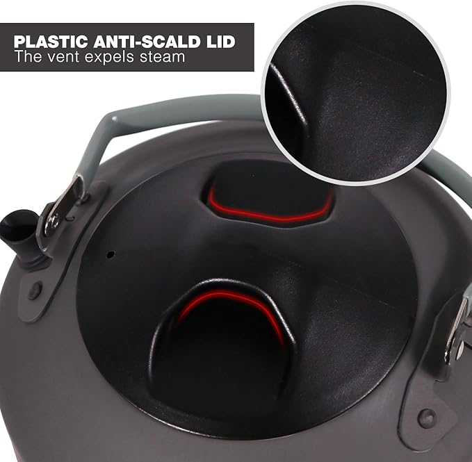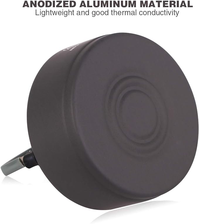 - HIGH QUALITY: Made of hard anodized aluminum, which makes the camping kettle have higher scratch resistance and stability than ordinary alumina. Updated silicone-coated handle and plastic lid for great anti-hot effect.