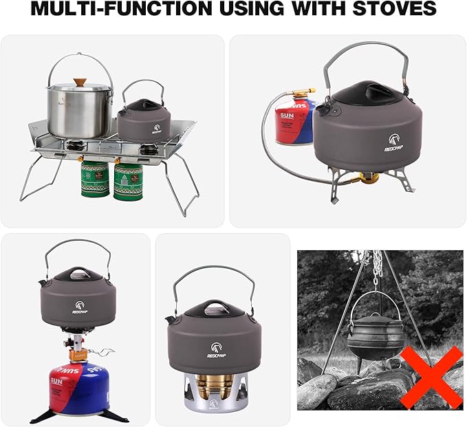 - OCCASIONS: Can be used as a camping teapot or coffee pot, for boiling water, tea, coffee, hot drinks and soup. Suitable for indoor and outdoor use, especially for hiking, backpacking, camping, traveling, fishing and picnic.