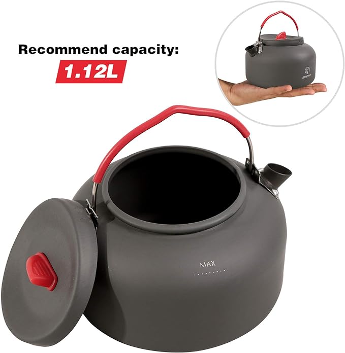 REDCAMP 1.4L Medium Outdoor Camping Kettle, Aluminum Water Pot with Carrying Bag, Compact Lightweight Tea Kettle