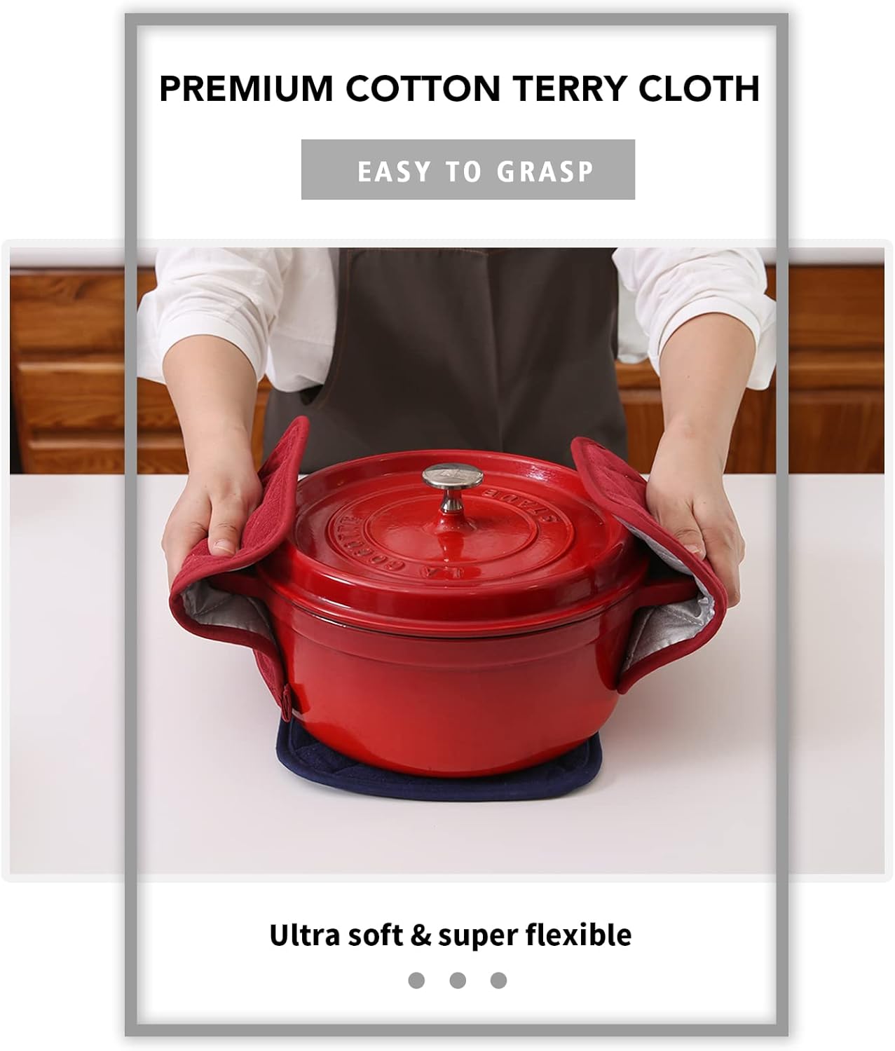 - PROTECT YOU FROM HEAT - The construction of these pot holders for kitchen helps to protect your hands and arms from the heat of the oven. Do not use pot holders in a hot oven or over an open flame.