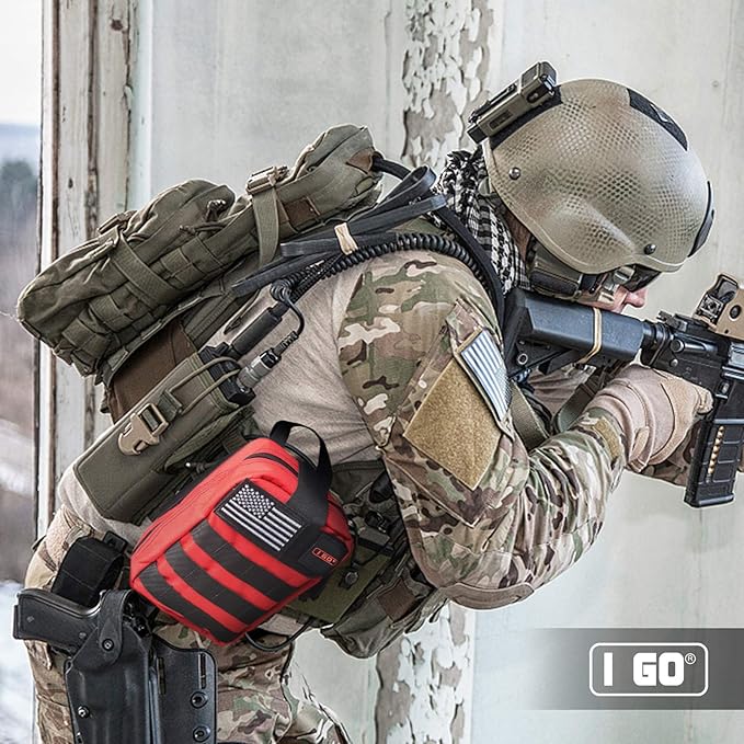 I GO Survival First Aid Kit, 251 Pieces Compact Tactical Trauma First Aid Bag, Molle Compatible Emergency Pouch for Outdoor Camping Hiking Backpacking and Travel
