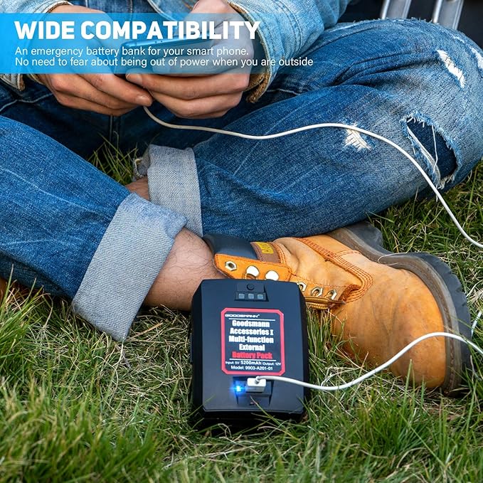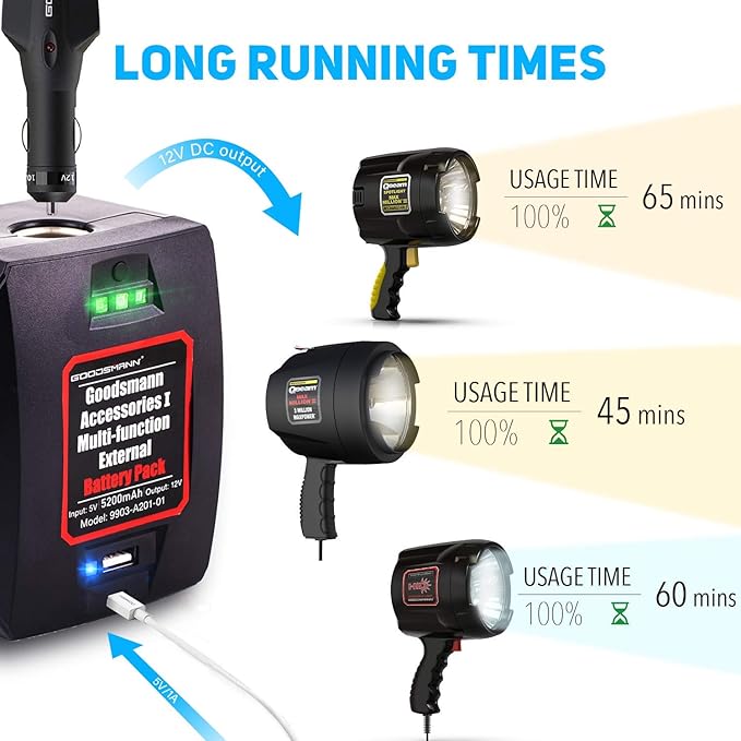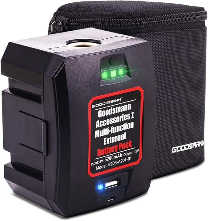 GOODSMANN Portable Battery for Rechargeable 12V Spotlights and Flashlights with USB Cable and Storage Bag A201-01