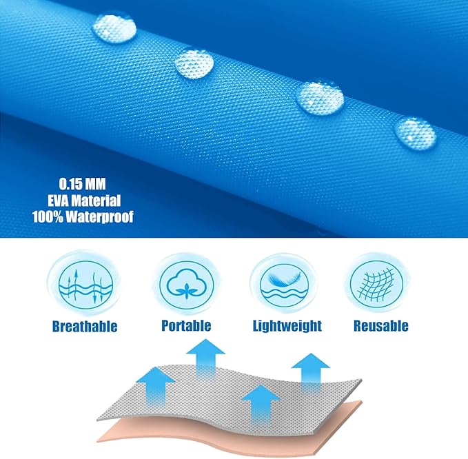 - Quality Conscious Choice: Made from premium EVA material, our rain poncho is tough, completely scentless, and soft - superior to PE or PEVA. Compact for easy storage and carry in backpacks, suitcases, cars, or at school for unexpected rain