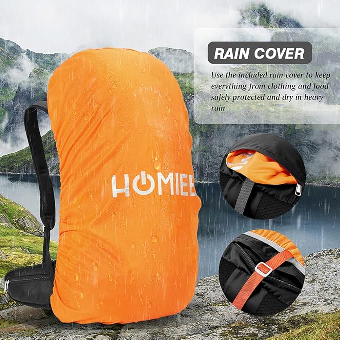HOMIEE 50L Hiking Backpack Travel Bag Waterproof Camping Backpack with Rain Cover Lightweight Backpacking Backpack Rucksack