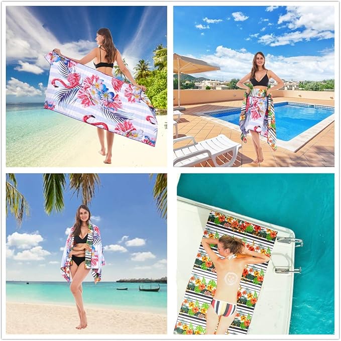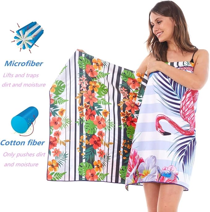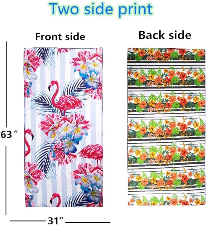 - ❤【NEW DEVELOPED TWO SIDE PRINTED】: Two side printed microfibre towel is healthy and silky smooth against your body. It is an amazing companion when you do Yoga or Pilates. It is a great beach accessory for adults, outdoor recreation, hiking,and it saves a lot of space in your baggage.We have colorful choices for you to choose from whether is stripped ,mermaid ,mandala ,unicorn,rose,shark,turtle,dog,elephant,lemon, flamingo beach towel.No need to worry about pattern.
