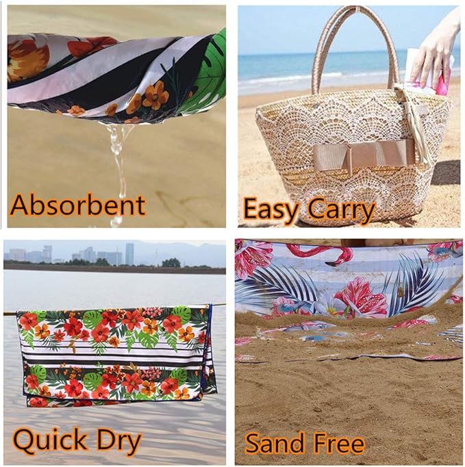 - ❤[SIZE AND MATERIAL]: Beach towel size is 31" x 63". New developed microfiber material is eco-friendly, no faded and no smell which is not same as normal towel material. It has special characteristics – quick dry, super absorbent, sand free, baby soft;