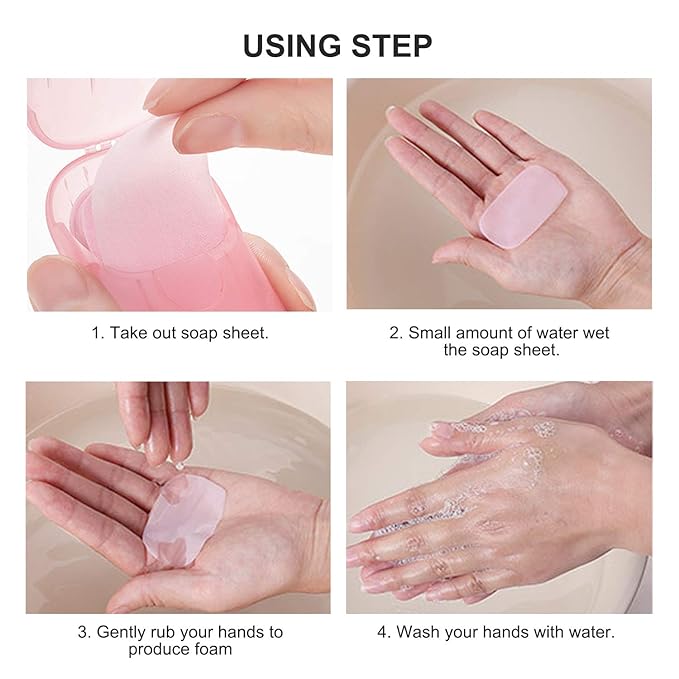 - Using Step: 1. Take out soap sheet 2. Small amount of water wet the soap sheet 3. Gently rub your hands to produce foam 4. Wash your hands with water.