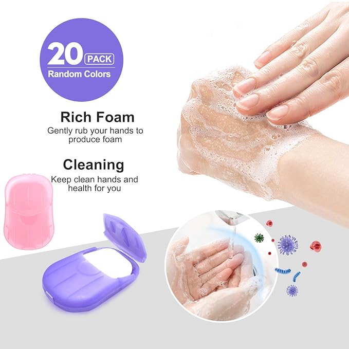 - Package Included: 20 Boxes (400 Sheets) x Portable Travel Disposable Soap Paper Sheets / Hand Washing Cleaning Paper Soap Flakes(Random Colors)