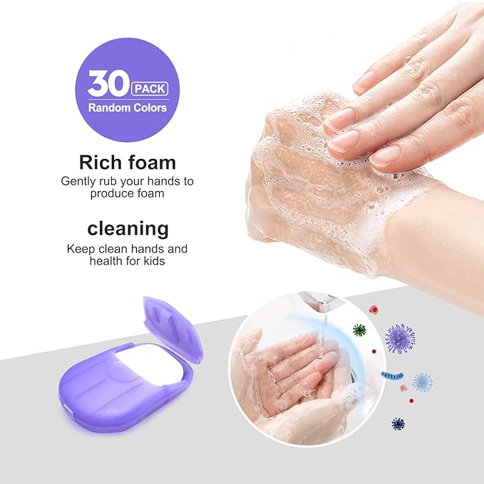 - Package Included: 30 Boxes (600 Sheets) x Portable Travel Disposable Soap Paper Sheets / Hand Washing Cleaning Paper Soap Flakes(Random Colors)