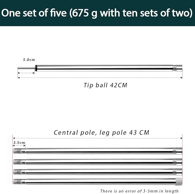 - Sturdy Support - Ensure a stable and secure shelter setup with threaded ends on this stainless steel tent pole. Camp with confidence, knowing your tent is reliably supported.