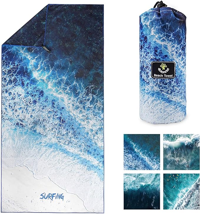 4Monster Microfiber Beach Towel Quick Dry,Super Absorbent Lightweight Travel Towel for Swimmers, Sand Free Camping Towel, Beach Towels for Pool, Swim, Water Sports,Yoga,Gym,Backpacking