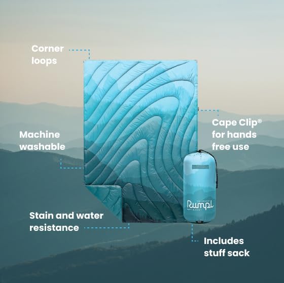 - DURABLE AND EASY CARE - Crafted with a ripstop shell, the Rumpl Original Puffy Blanket withstands outdoor elements and is machine washable, ensuring long-lasting use and easy maintenance for all your adventures. Machine wash on cold and hang dry or tumble dry on low.