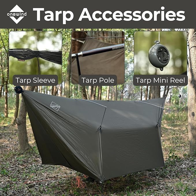 - ULTRALIGHT AND VERSATILE. It’s a backpacker’s dream. The rainfly itself weighs just 1.8lbs but don’t let the lightweight material fool you as Onewind’s hammock tarp offers heavy-duty weather protection. Designed with an overlapping door system to make it completely versatile. This design helps shield you from the outside elements, keeping you safe whether it’s snowing, raining, or sleeting but if the weather is nice, simply fold up the doors to enjoy the wind on your face.