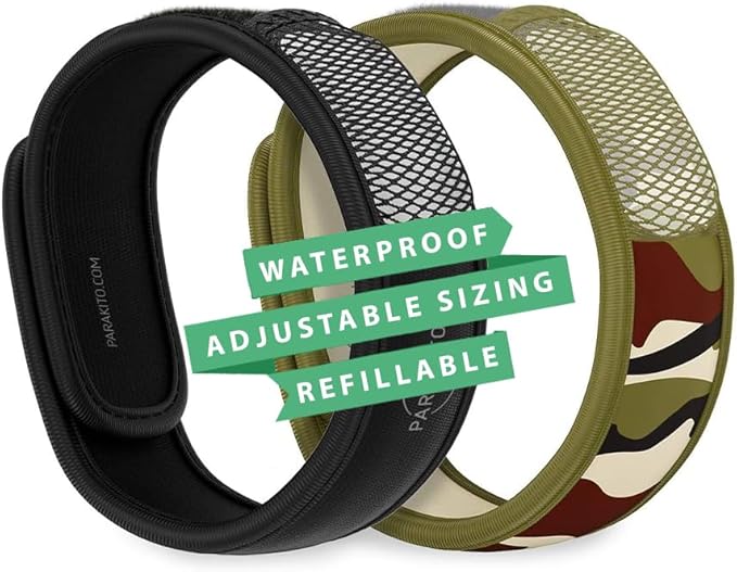- WATERPROOF & REFILLABLE: PARA'KITO bug repellent bracelets provide constant protection for 15 days per refillable pellet, whether you're strolling through the outdoors or snoozing on a tanning bed. Two pellets are included in these mosquito bracelets for adults and kids.