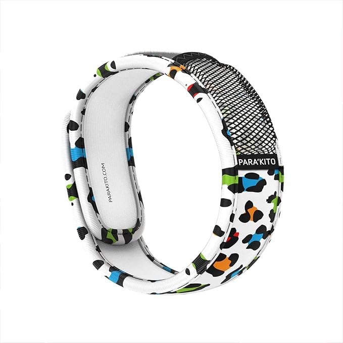 PARA'KITO Mosquito Insect & Bug Protection Wristband - Mosquito Stickers, Bug Spray Alternative - Summer Essentials, Beach Accessories, Hiking, Camping Essentials - w/Essential Oils (Leopard White)
