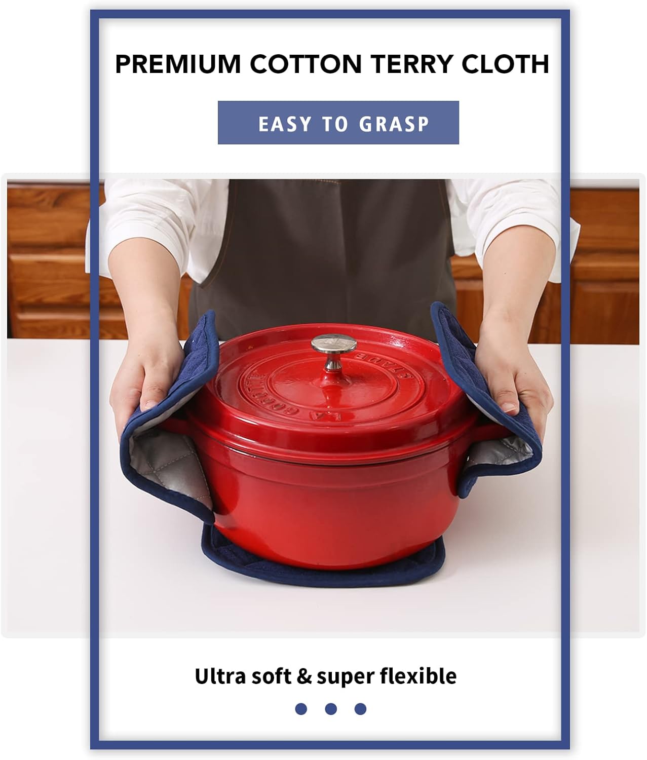Joyhalo 4 Pack Pot Holders for Kitchen,Cotton Oven Holder with Great Heat Resistance,Non Slip Hot Pads for Kitchen Clearance,Dark Blue