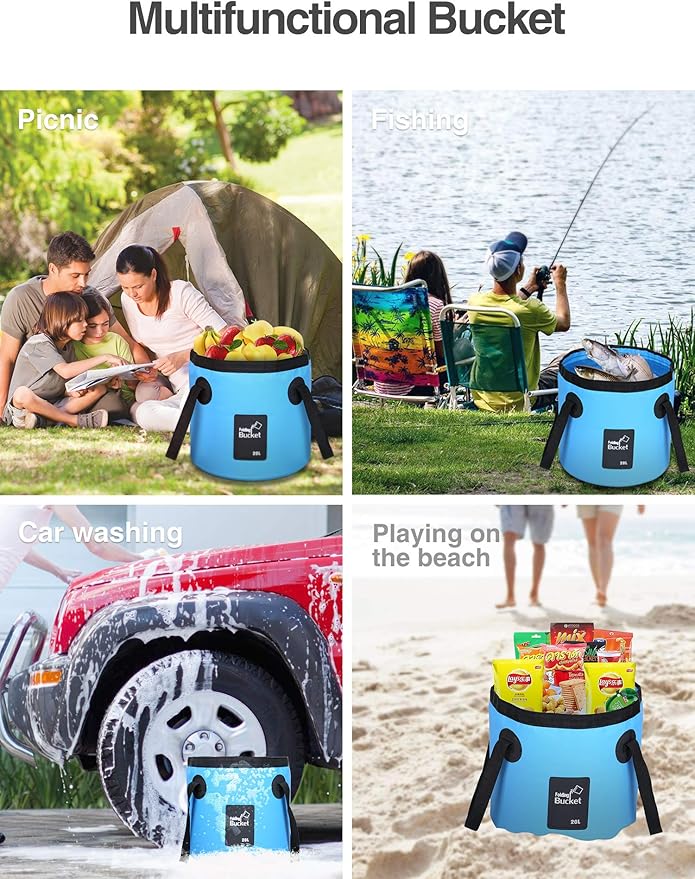 - ❤ LARGE CAPACITY: Capacity - 5 Gallon bucket (20L) can meet your outdoor daily use. Easy to use and dry quickly with using high-quality fabric.