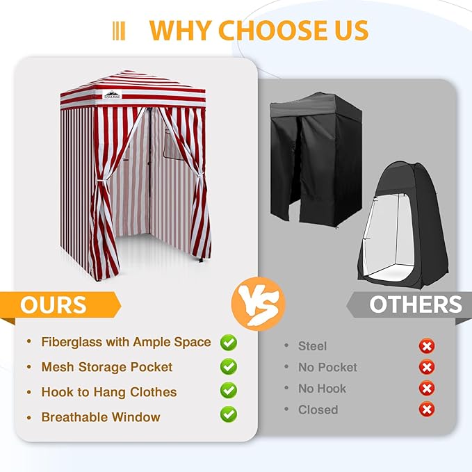 - INSTANT PRIVACY CHANGING ROOM: 4x4 changing tent for one or two people. Perfect as a changing room or sun cabana for outdoor activities: fashion show, photoshoot, camping, backyards, pool party or a showering tent, portable toilet shelter .