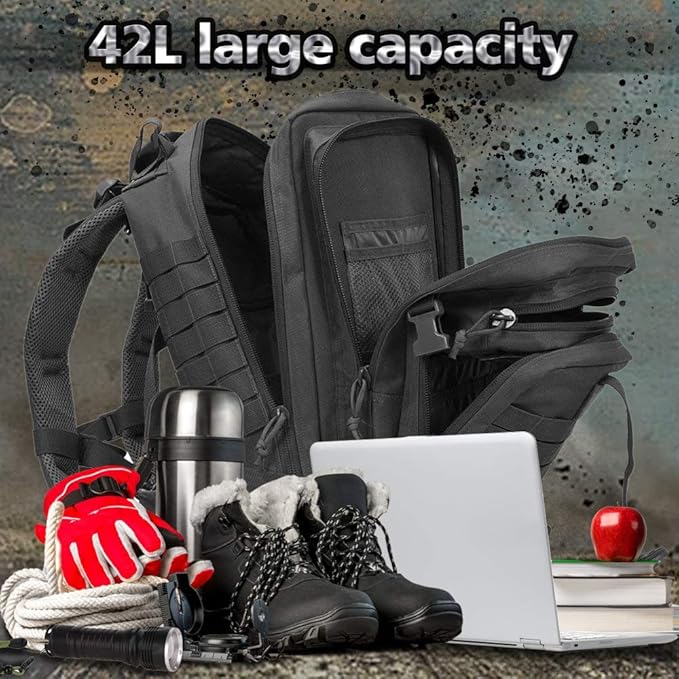 - 【42L Large Capacity Backpack】EMDMAK Tactical Backpack Size Approx. 15.36"x 19.69"x 11.81" (W*H*D), Capacity: 42L. Large capacity assault pack, allowing you to carry all your tactical gears. It can be used as small 3 day assault pack, emergency backpack, bug out bag backpack, combat backpack, range bag, survival backpack, army backpack, molle emt backpack, EDC outdoors backpack, hunting backpack, hiking backpack, camping backpack, travel backpack or day pack for daily Use.