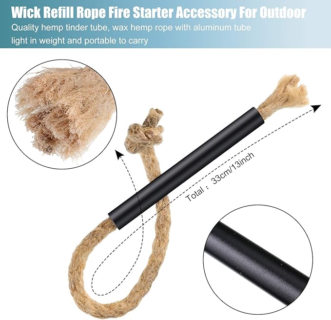 - Enough length: the jute tinder tube measure approx. 33 cm/13 inch in length and 6 mm in diameter, enough length to meet your various use and replacement, you can cut it into suitable size for your outdoor use, not easy to tear up and slip off