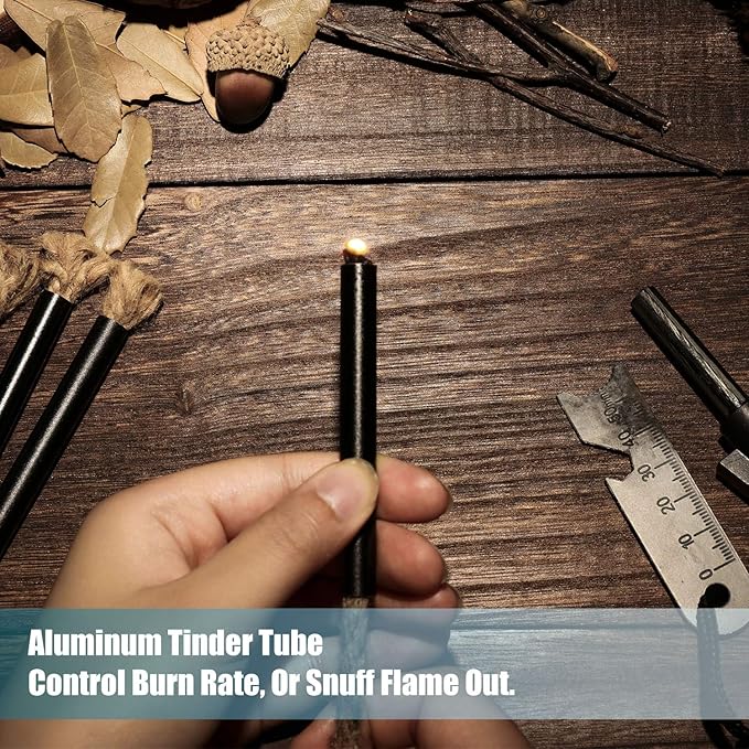 6 Pieces Jute Tinder Tube Waterproof Wax Wick Fire Starter Accessory with Aluminum Sleeve for Outdoor Camping Hiking Trekking Supplies