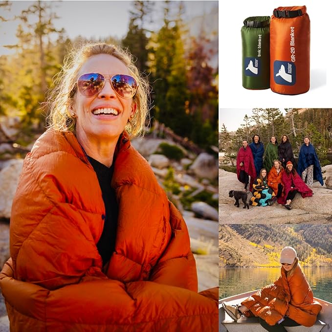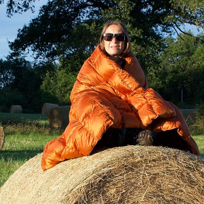 - VERSATILE DESIGN: For backpacking, hiking, the beach or festivals, or afternoons on your couch, this puffy down throw wraps around you and clips together to make a warm, poncho style stadium blanket. Pair with the rest of your thermal equipment for instant, long-lasting warmth in cold weather.
