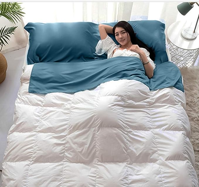- LIGHTWEIGHT & PACKABLE: This travel sleep sheet line is 70.9 x 82.7inch(180 x 210cm) for double use. Only 31oz (875g). It can be folded into a practical 11.6”x 10.2”(29.5 x 26cm) pocket for saving space, very portable and lightweight. Easy to carry for travel use and save pace in your backpack.