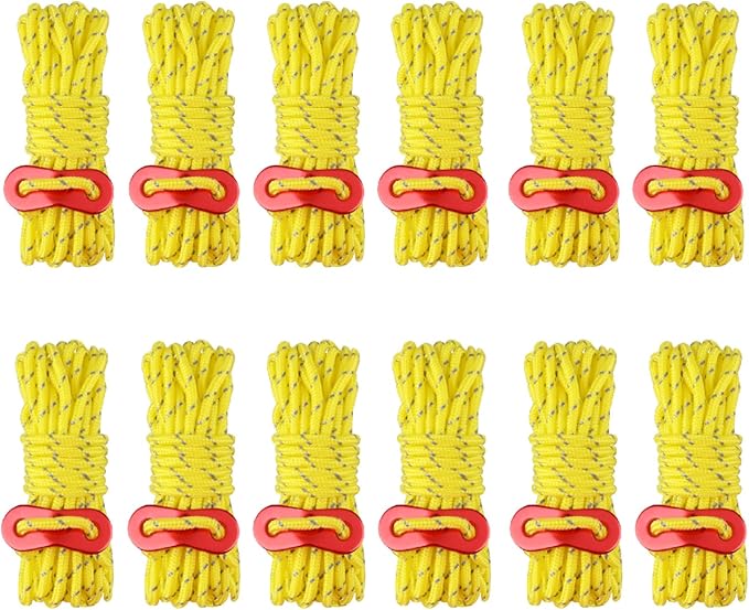 - 🌱 HIGHLY VISIBLE & ESSENTIAL CAMPING ACCESSORIES: Use brightly colored orange, yellow or green cord (reflective) that stands out since guylines do tend to be tripping hazards. Quickly stake out each cord without having to worry too much about the placement