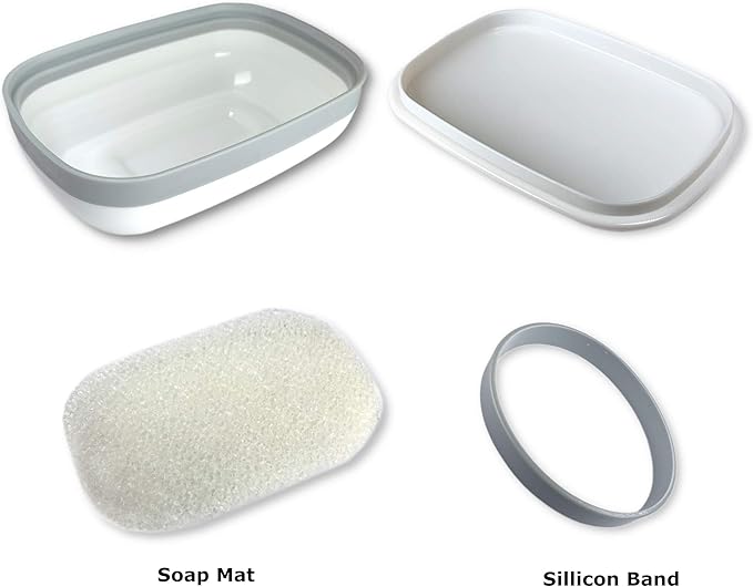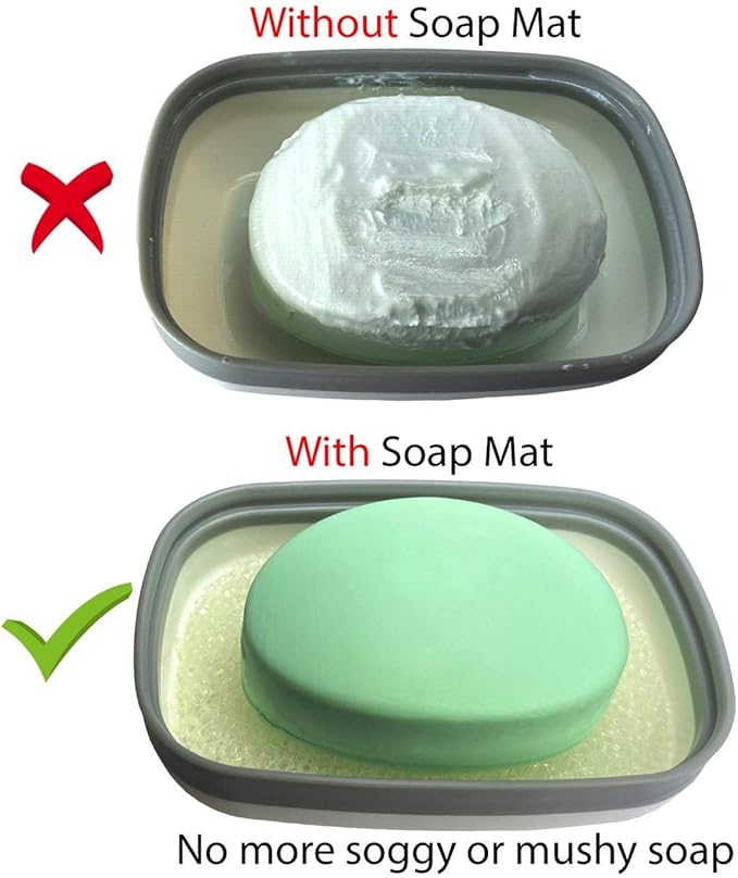 - ** SOAP MAT: The sponge soap mat that goes inside the soap holder absorbs any excess water and prevents your soap from getting mushy or soggy. It keeps your soap dry and doesn't let bacteria grow on it, therefore giving you longer lasting soap .
