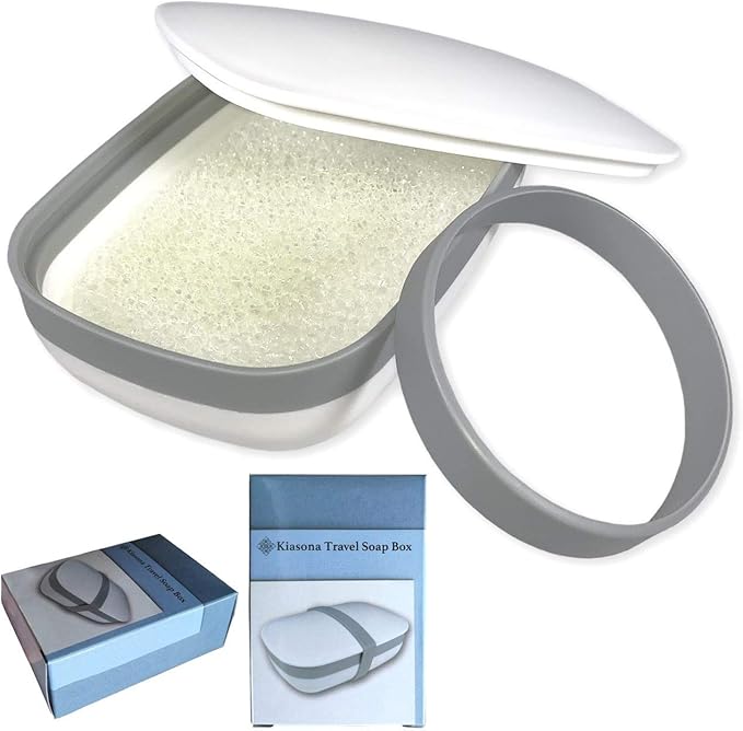 - ** SILICONE BAND: Thick Silicone Band wraps around the soap box and holds it firmly, making it 100% LEAK PROOF and doesn’t let your soap leak out in to your bag, so you can carry your soap holder in your bag/suitcase/luggage without concern of accidentally opening its lid .