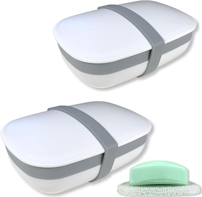 2Pack Travel Soap Box,soap Bar Holder Dish Container Case with Sponge Saver&Silicone Band,Strong Sealing,Leak Proof,Portable,Best for Bathroom,Gym,School,Camping,Hiking,Vacation(Pack of 2)