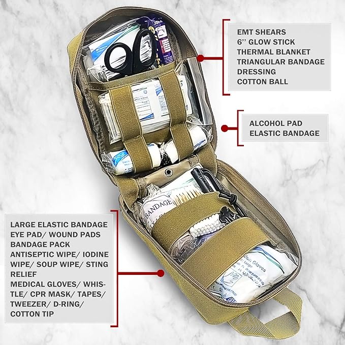 200 Pieces First Aid Kit IFAK Survival Kit Molle System Compatible Pouch, Emergency Kit Gift for Men, Dad, Husband, for Outdoor, Camping, Hunting, Hiking, Home, Earthquake, Disasters