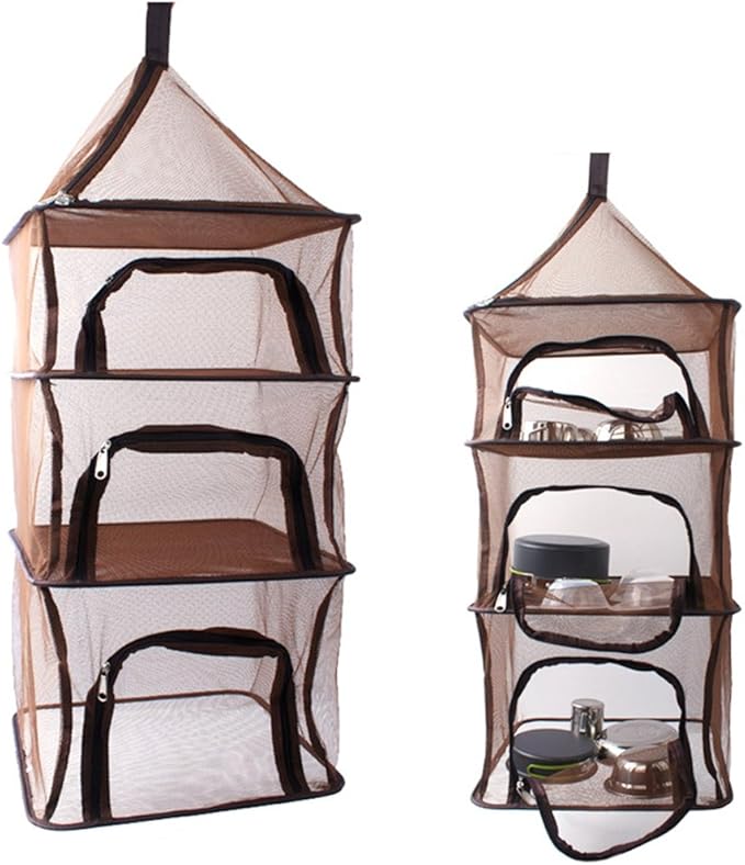 - 【Perfect Design】:Enclosed Design,mesh fabric and zipper design make it breathable. You can organize your food items easily, and get easy access to what’s needed by simply opening the corresponding zipper. Moreover, each layer has wire around maintain horizontal,Strengthen the stability, convenient for you to hang anywhere for all outdoor activities.