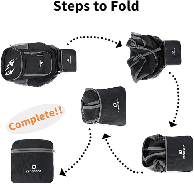 - 【Collapsible & Comfortable】It can easily fold into its own pocket for storage,and unfold it when you need it. A must have for every trip.Breathable mesh shoulder straps with plentiful sponge padding help relieve the stress from your shoulder. A must have for sports , hiking, camping and traveling.