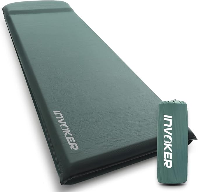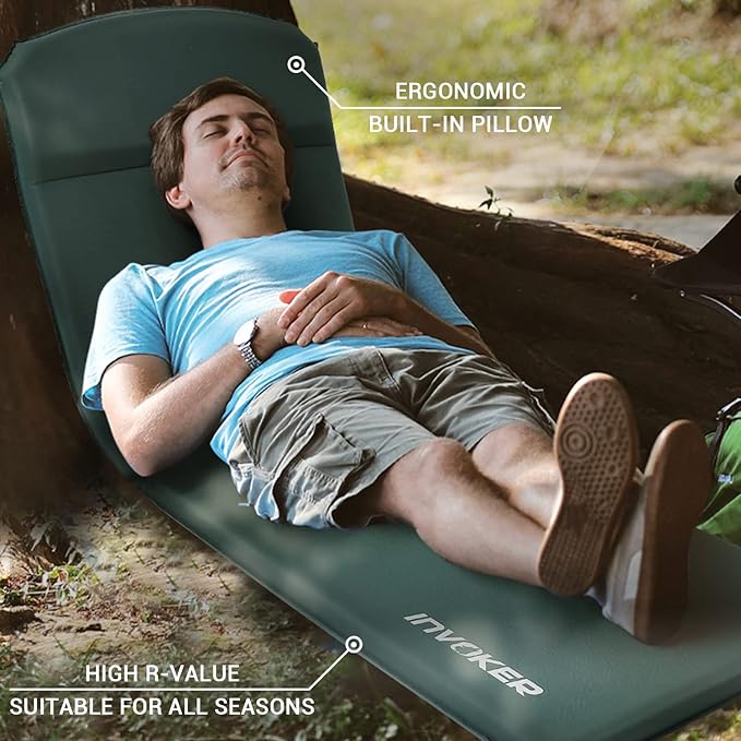 INVOKER Camping Sleeping Pad – 3.1 inch UltraThick Elasticity Foam Fast Self-Inflating Insulated Durable Camping Mat with Pillow for Tent Backpacking Traveling and Hiking Air Mattress