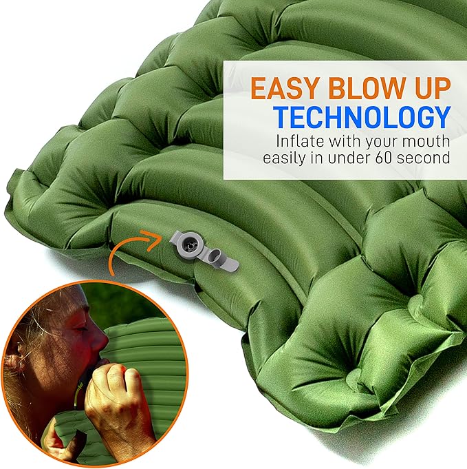 - QUICK INFLATING: Just lay this camping air pad backpacking mat flat on the ground, open the gas nozzle and it is super easy to blow up and it does not take a lot of strength. Just tighten the gas nozzle when inflation is complete. No air pump needed