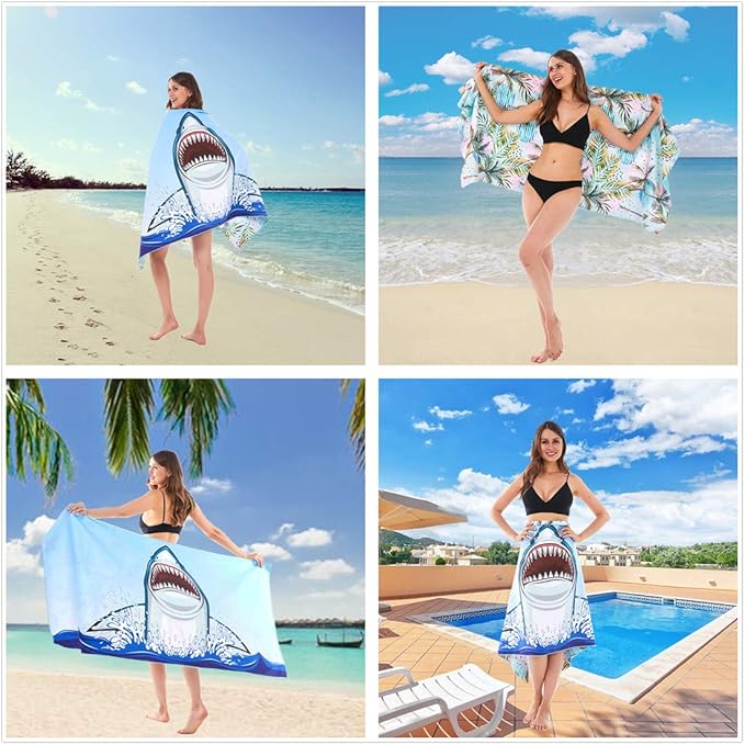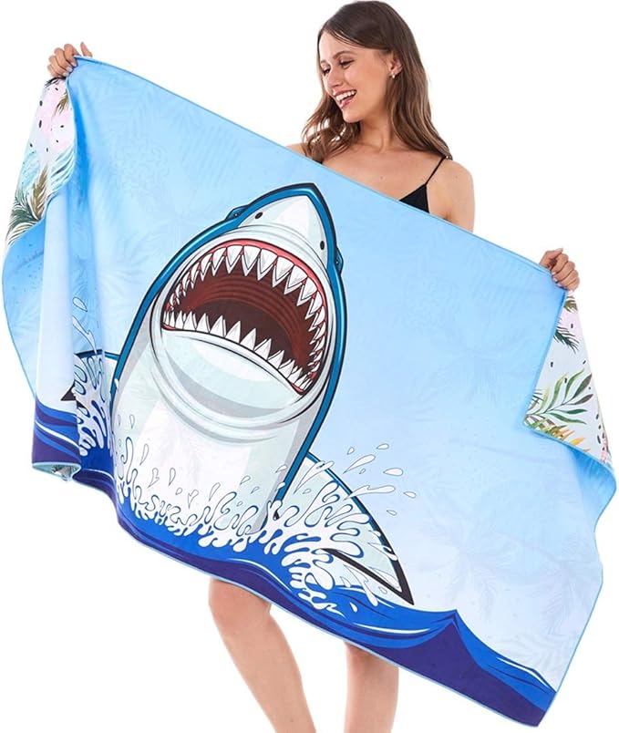 HAOKUN Microfiber Sand Free Beach Towel Blanket-Quick Fast Dry Super Absorbent Lightweight Thin Towel for Travel Pool Swimming Bath Camping Yoga Gym Sports Idea … (Shark)
